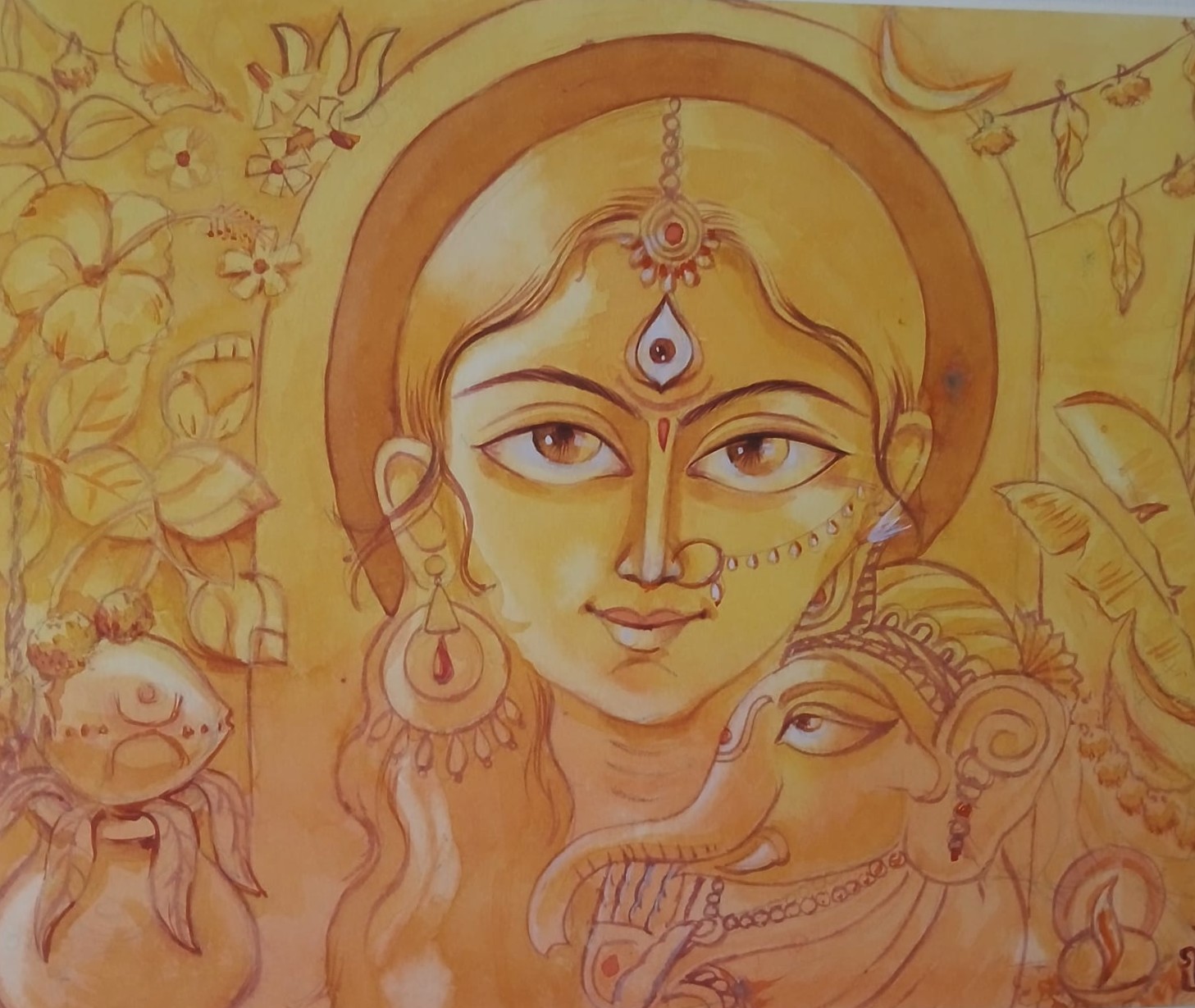 Gargi’s work primarily focuses on Indian-style tempera and wash paintings.. She also expresses her creativity through sculpture with a special emphasis on female figures.